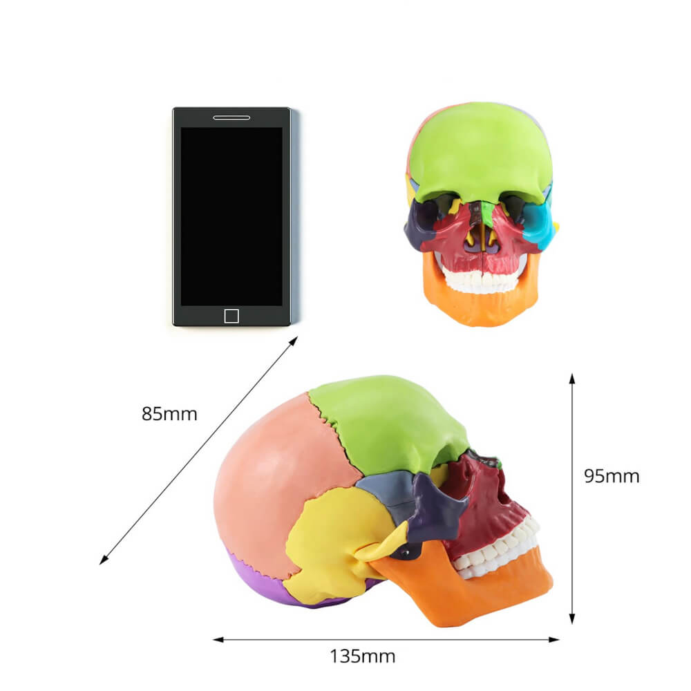 Wysokiej jakości model anatomiczny ludzkiej czaszki w przystępny i atrakcyjny sposób umożliwia dokładne poznanie jej budowy. Dzięki kolorowemu i szczegółowemu odwzorowaniu struktur anatomicznych nauka staje się szybsza, bardziej intuicyjna i skuteczna.